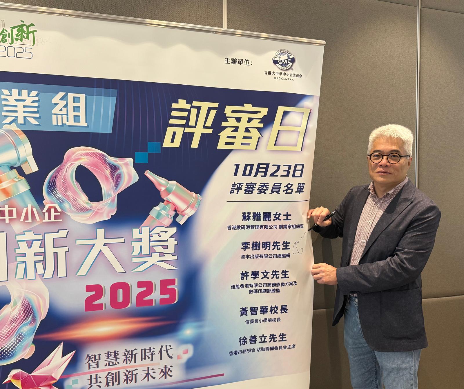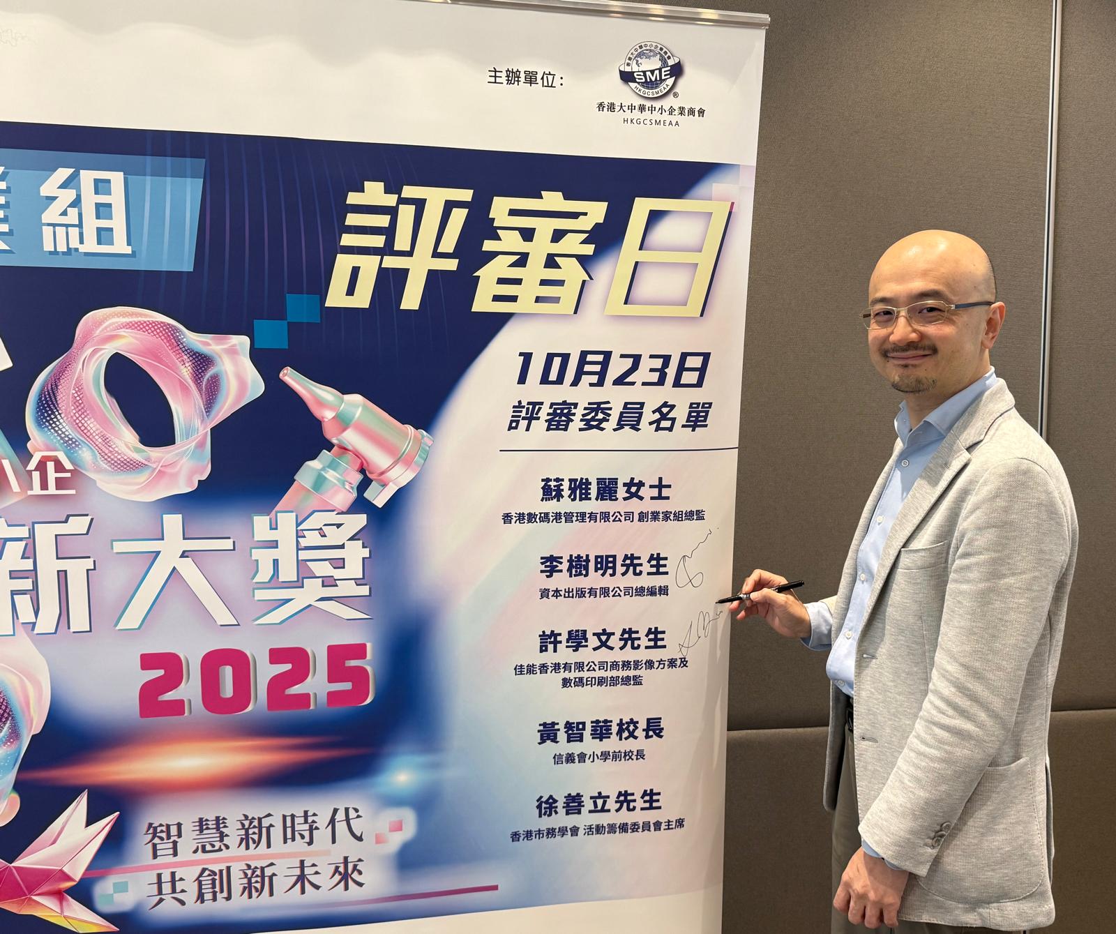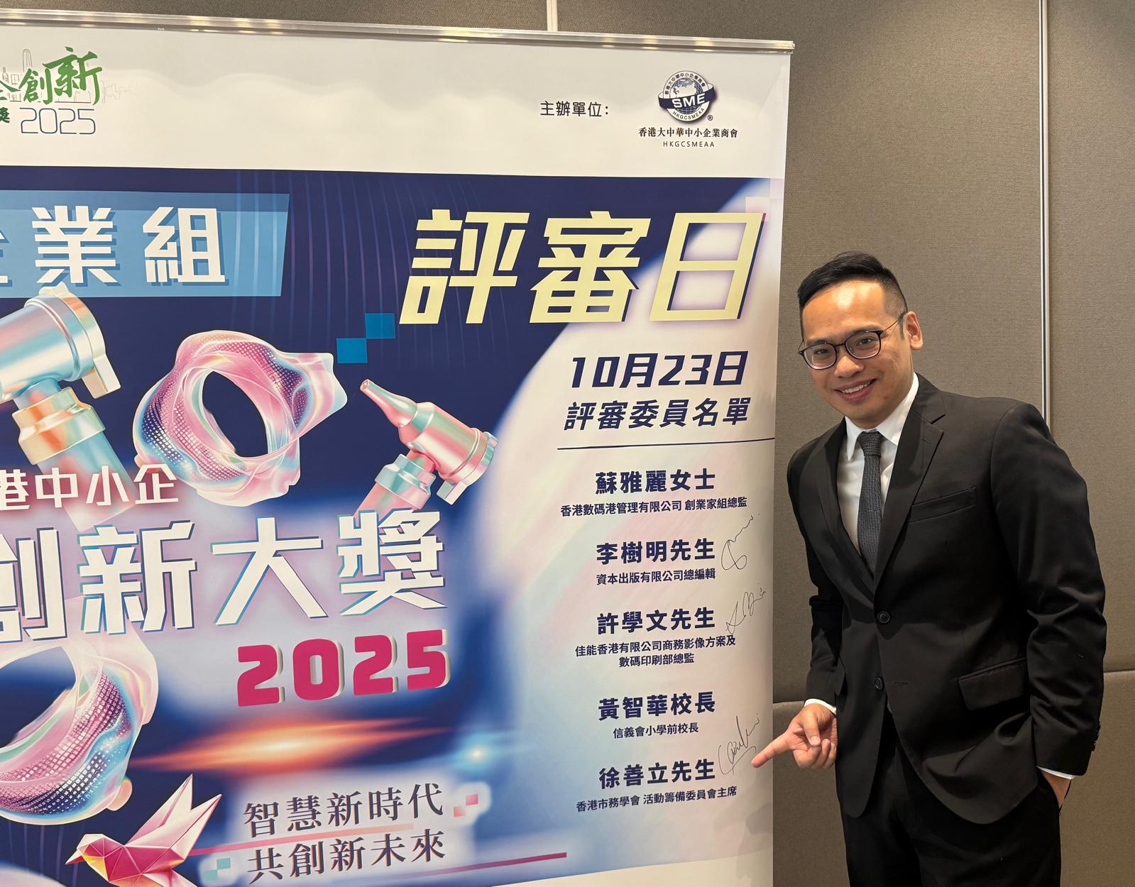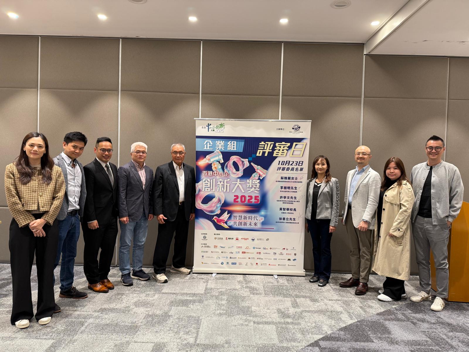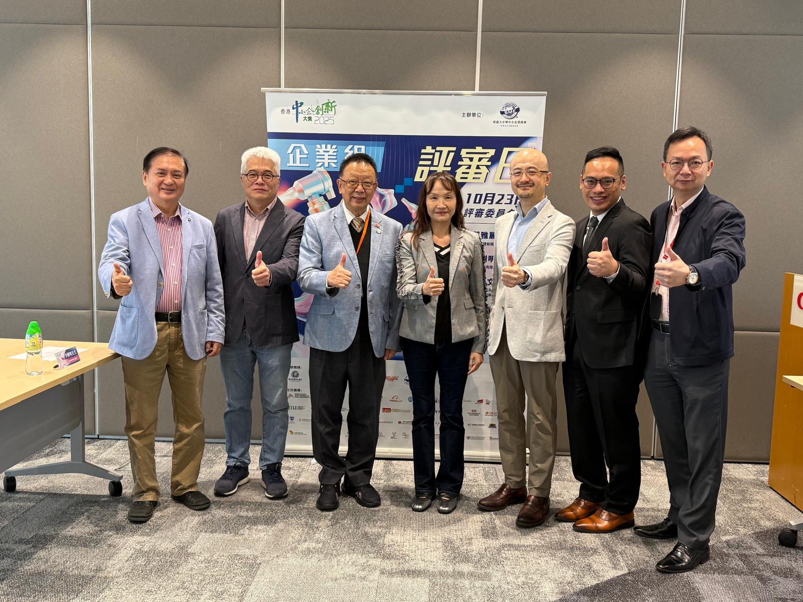 2025.10.23 香港中小企創新大獎企業組評審日,今年參賽隊伍除了香港企業,還有大灣區企業,憑藉嶄新意念和先進AI技術,結合行業專業知識,以創新思維展現強大的市場潛力和可持續性在創新。評審團讚揚其跨領域融合能力,為產業轉型樹立標竿,期待見證其落地實踐,帶來深遠經濟效益。在創新、市場潛力及影響力等關鍵標準上均表現出色。為企業創新注入新活力。